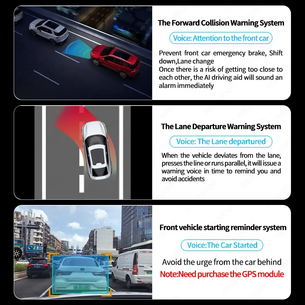 Utilizing advanced sensor technology and intelligent algorithms, ADAS offers comprehensive driving protection and warning functions. From lane departure warning to forward collision alert and front vehicle started, ADAS is your constant companion, providing timely and accurate warnings, giving you peace of mind and confidence during your journey. Experience the future of driving technology by choosing our carplay screen combining GPS, App control and ADAS function, ensuring your driving safety is always prioritized.